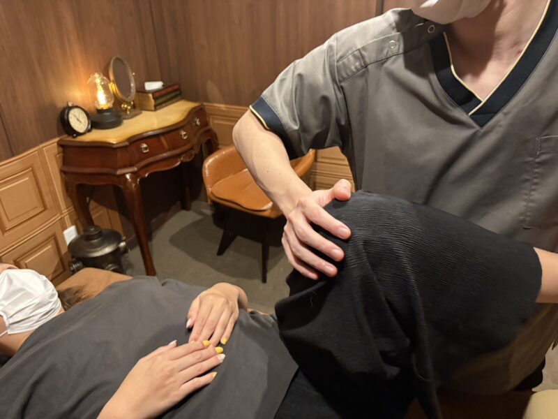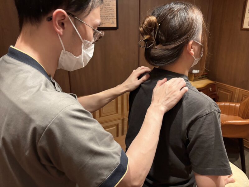 施術では、首や肩だけでなく全身のバランスを整えながら、