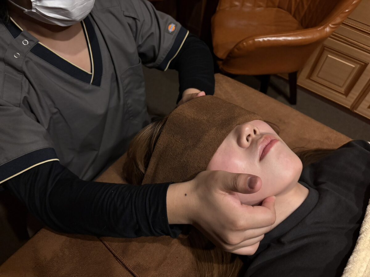 施術では、身体全体のバランスを整えながら、首や肩まわりの緊張をゆるめていきました。